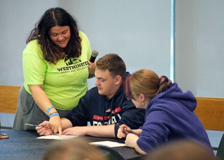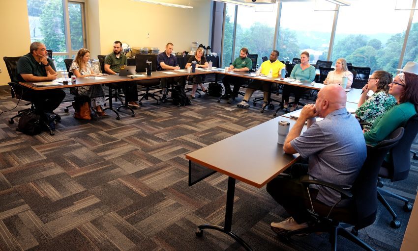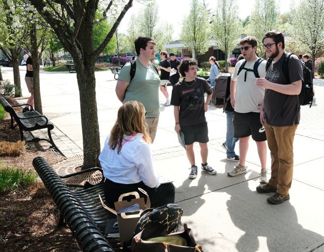 Director of Upward Bound Math & Science Nate Obin welcomed President Donna Hodge toa discussion this morning as part of our Future Educator Academy. President Hodge discussed her own journey in higher education and took questions. Some of our Presidential Ambassadors, as well as our Dean of the School of Education, Mojdeh Bayat and Economics, History and Political Science Professor Christine Dee were on hand to answer questions as well.