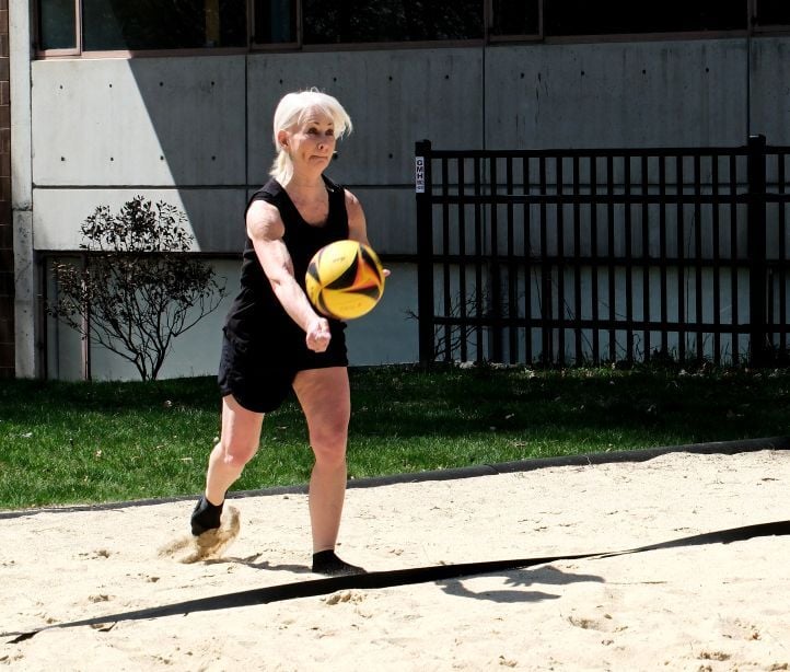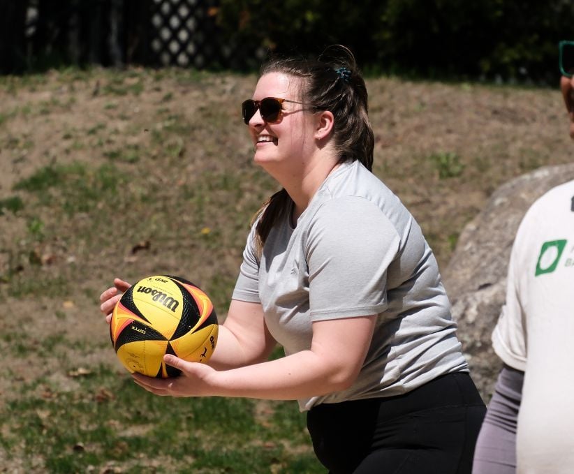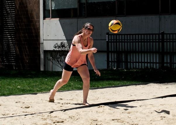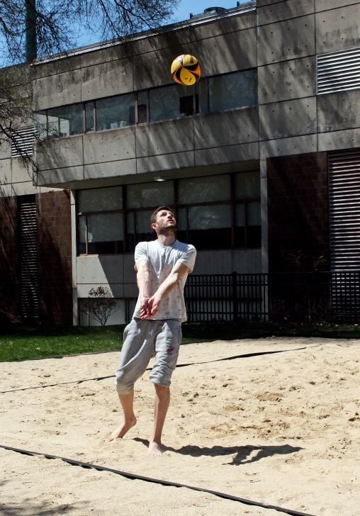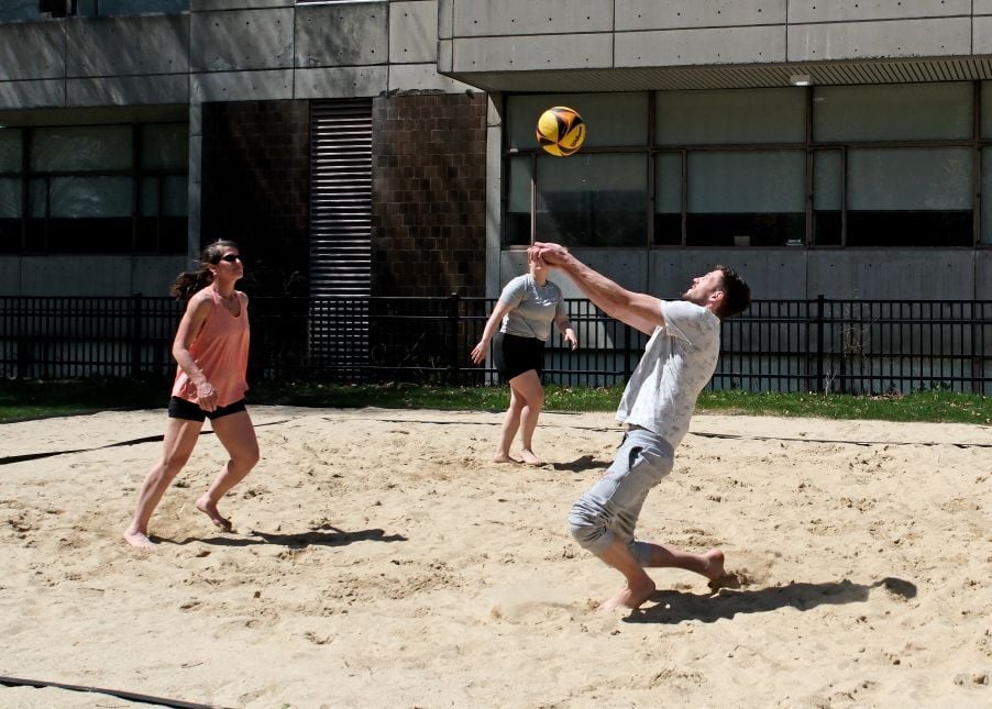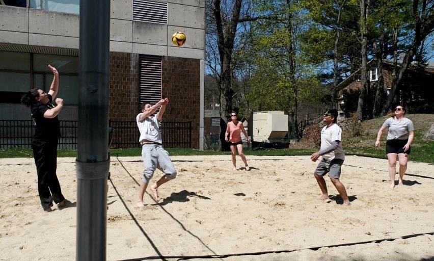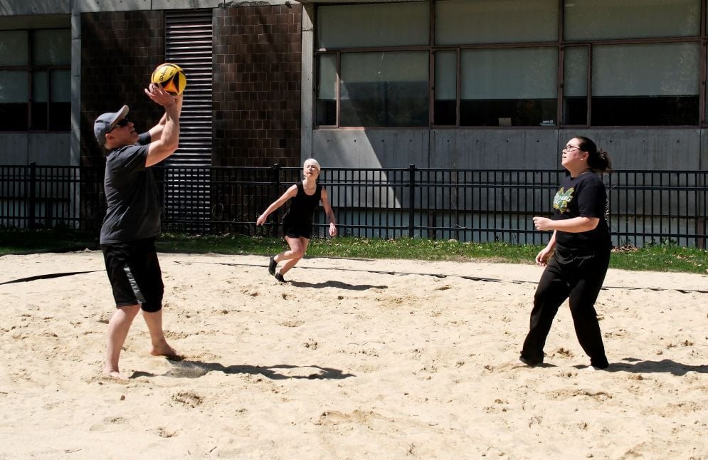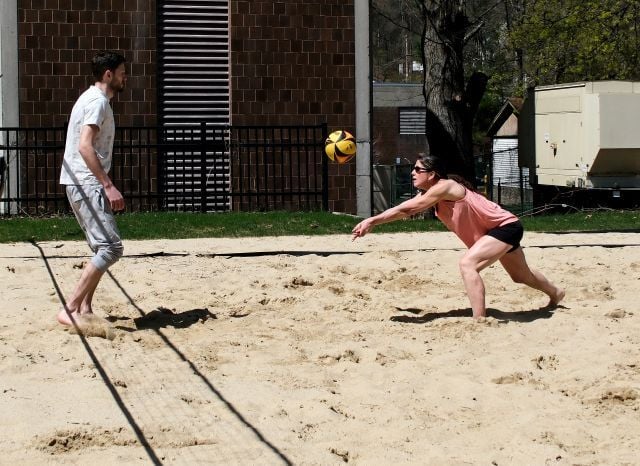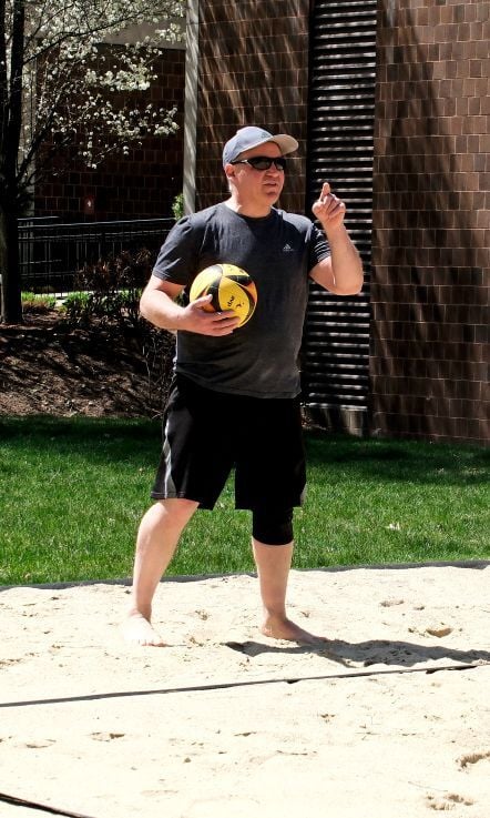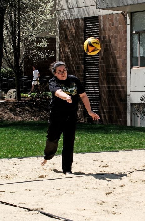 Faculty & staff members took full advantage of the warm spring afternoon, and the volleyball court by the Conlon Arts Building, for a pick-up match.