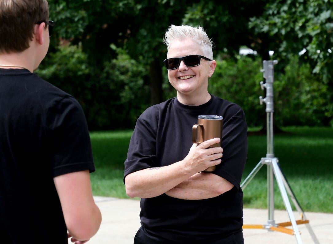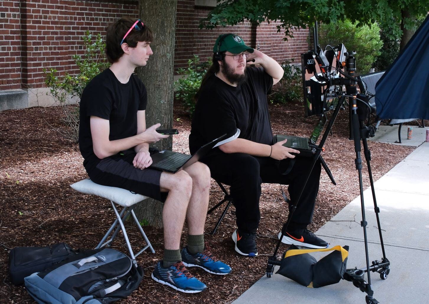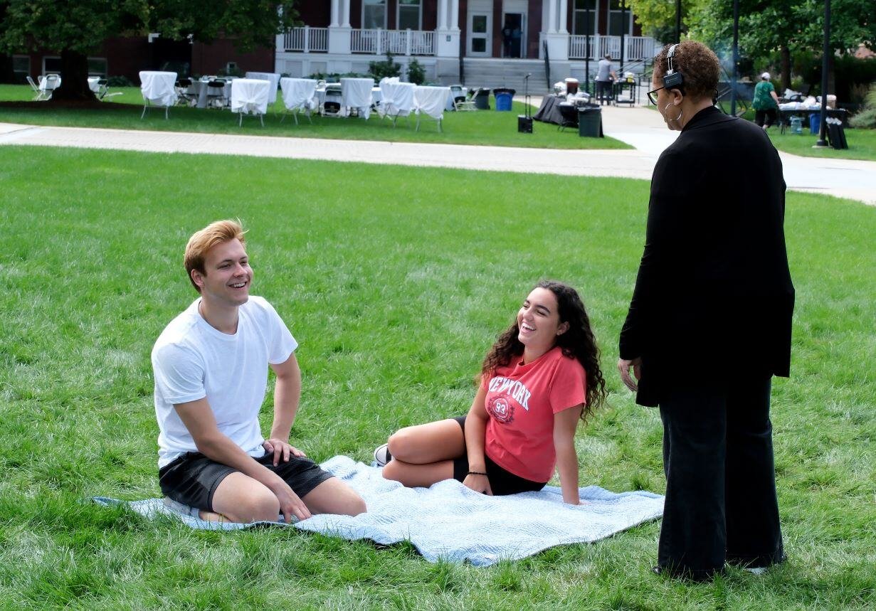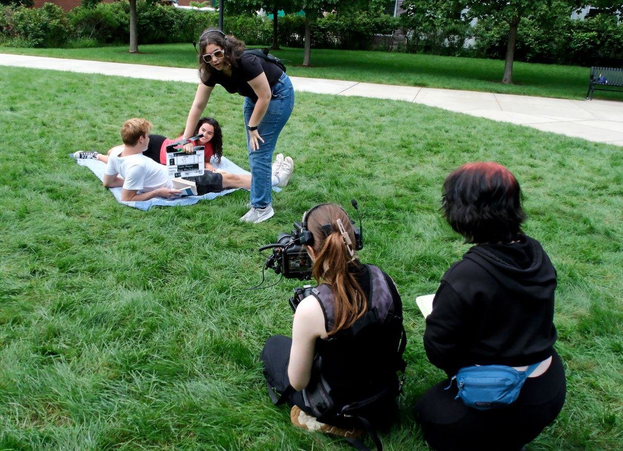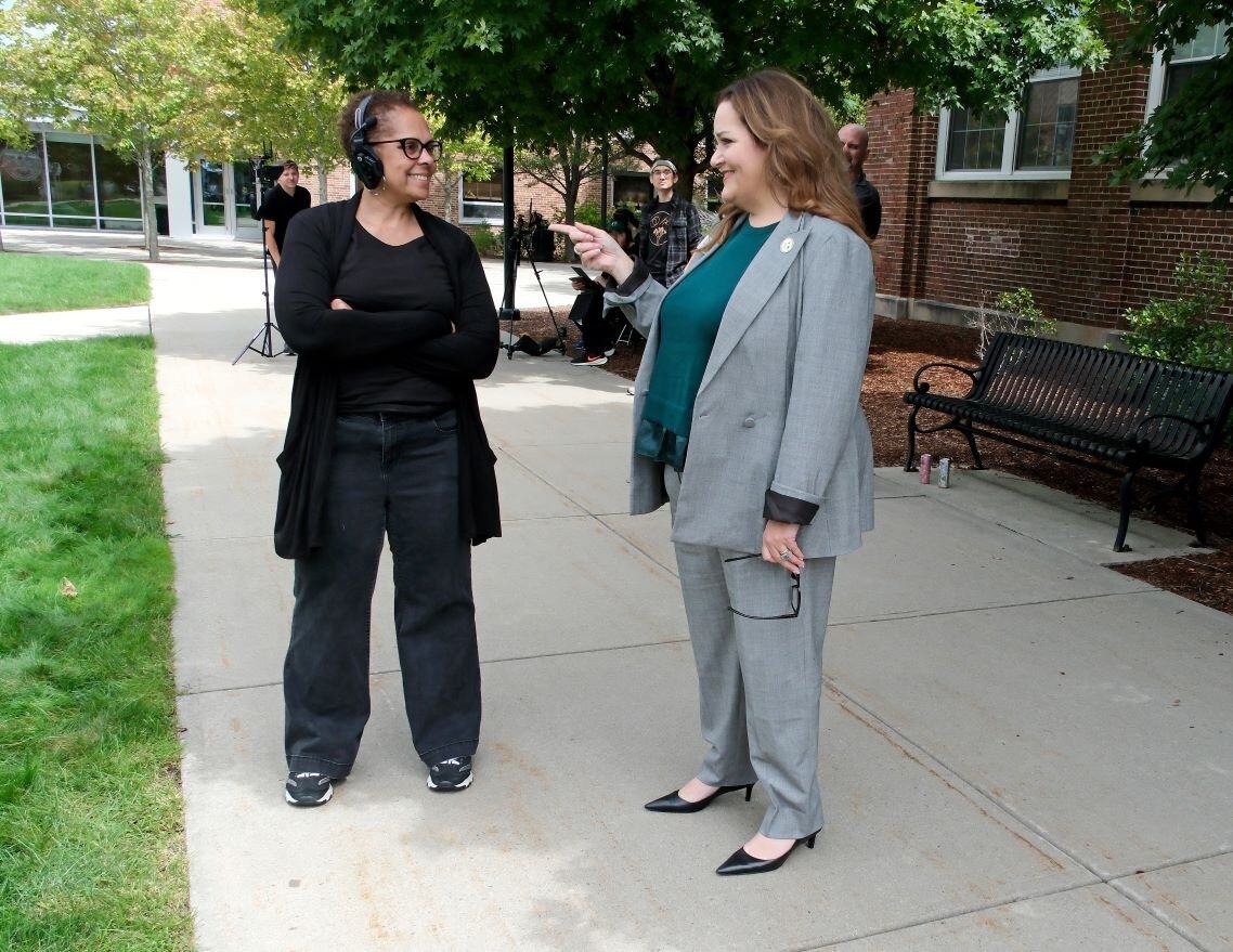 Award-winning filmmaker, Communications Media/Film/Video Concentration student, Tonia Magras continued filming "Do You Remember Me?" at various locations here on the Fitchburg State University campus including a residence hall, the quad, and our Game Room. President Hodge stopped by to chat with Tonia and the crew of students during their quad shoot.