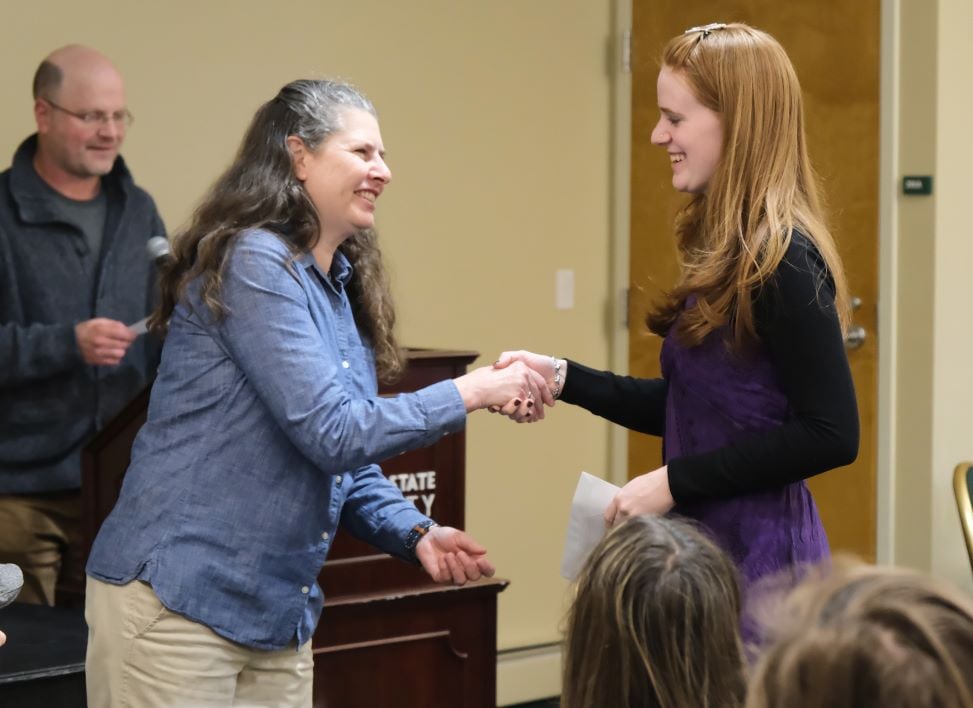 The English Studies Department held their annual High School Writing Awards and Creative Writing Awards Ceremony yesterday afternoon in Presidents Hall. First place and honorable mention writing award winners from area high schools were recognized. Some of the first place high school winners' writing along with Fitchburg State student writing appear in the latest volume of Route Two literary publication which was available for free at the event.