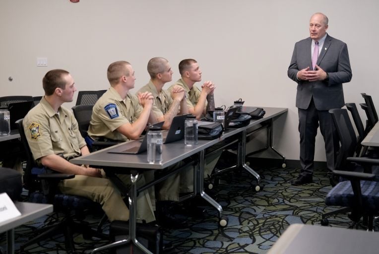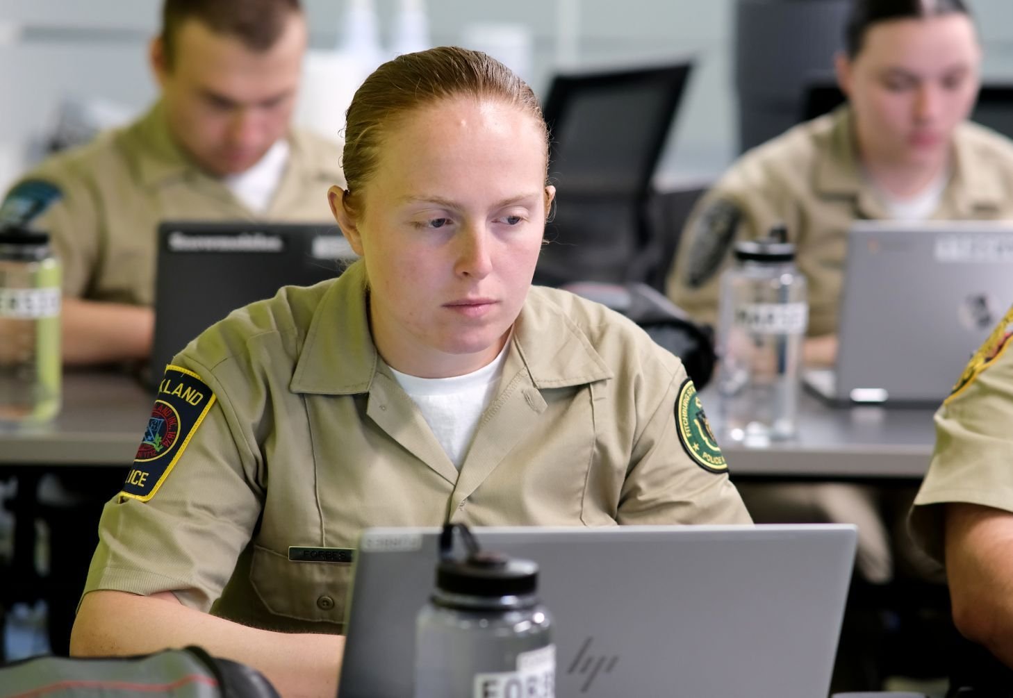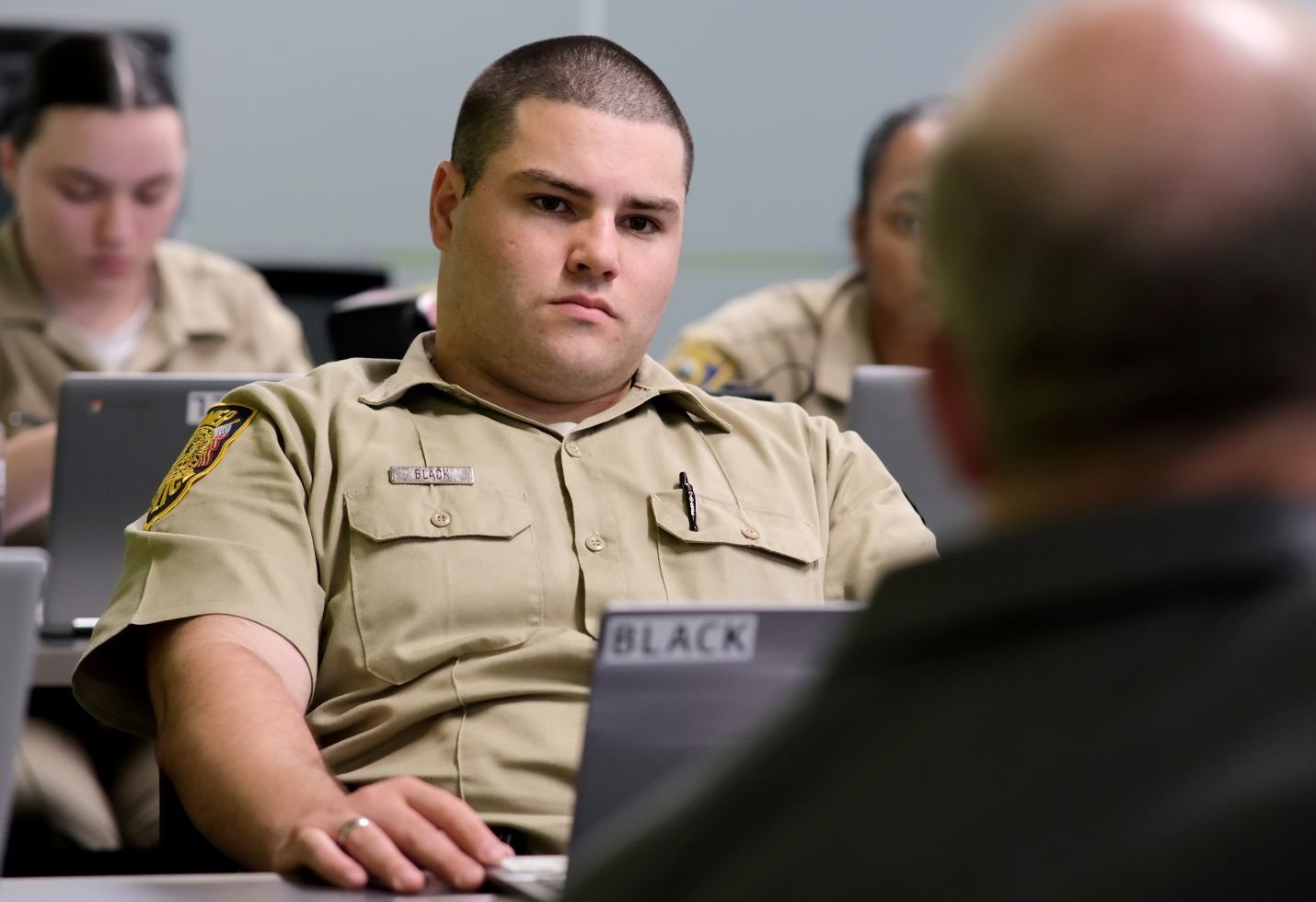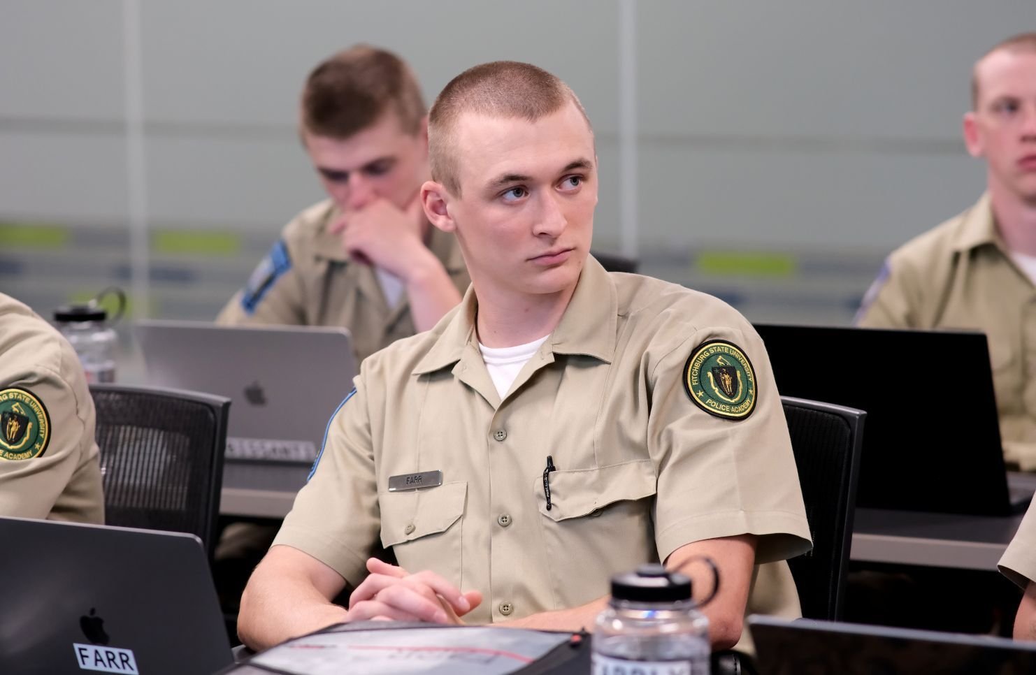 This morning, the 8th Fitchburg State University Police Program's Recruit Officer Course (ROC) class had their second day of Criminal Law training with Capt. Ronald Young. In this course, the class will learn about case law and how it affects various court cases.