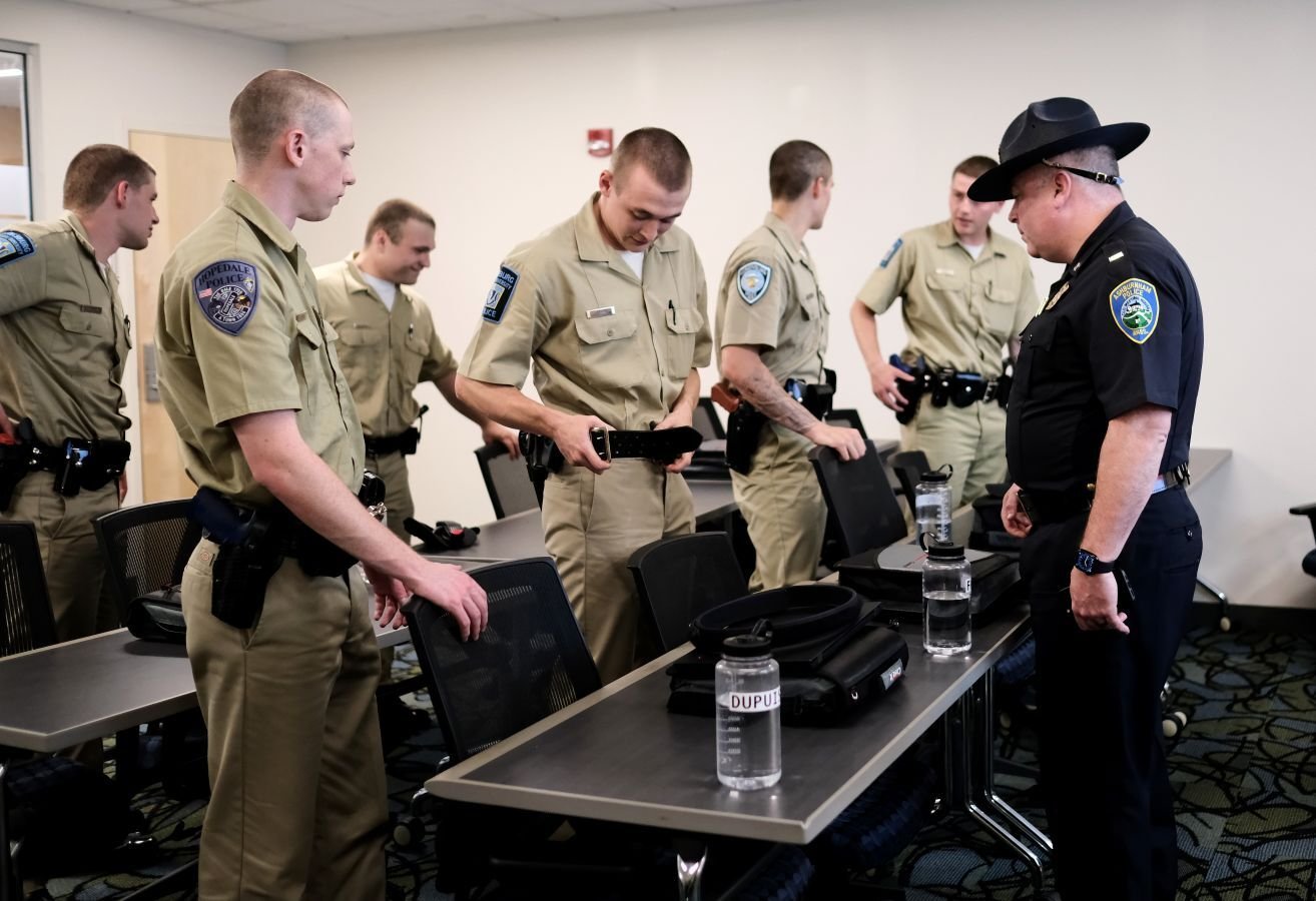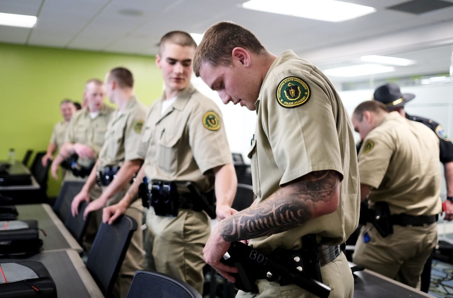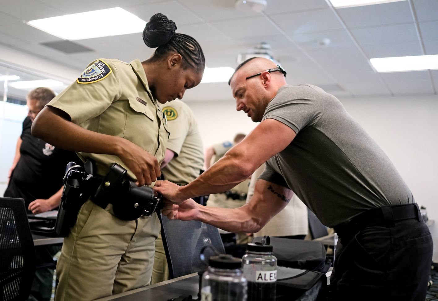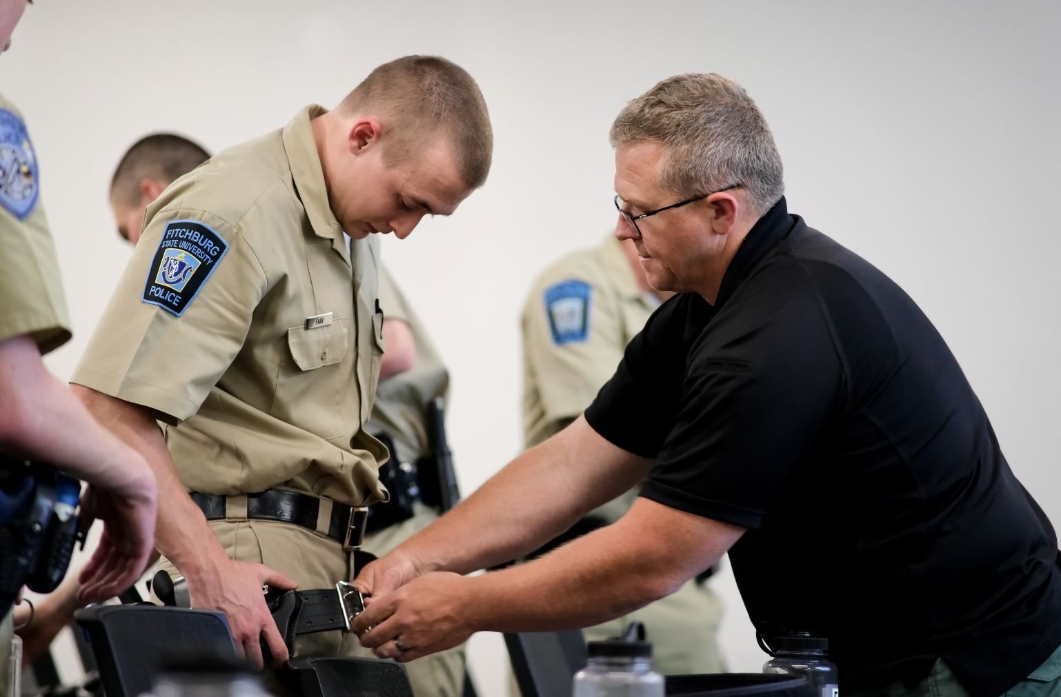 Last week, the 8th Fitchburg State University Police Program's Recruit Officer Course (ROC), with instruction and assistance from Instructor Sergeant Gordon Candow, Instructor Trainer Officer Anthony Eydenberg, and Lieutenant John Boucher, assembled their duty belts.