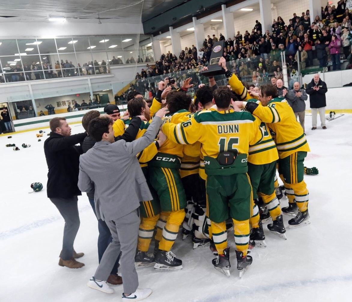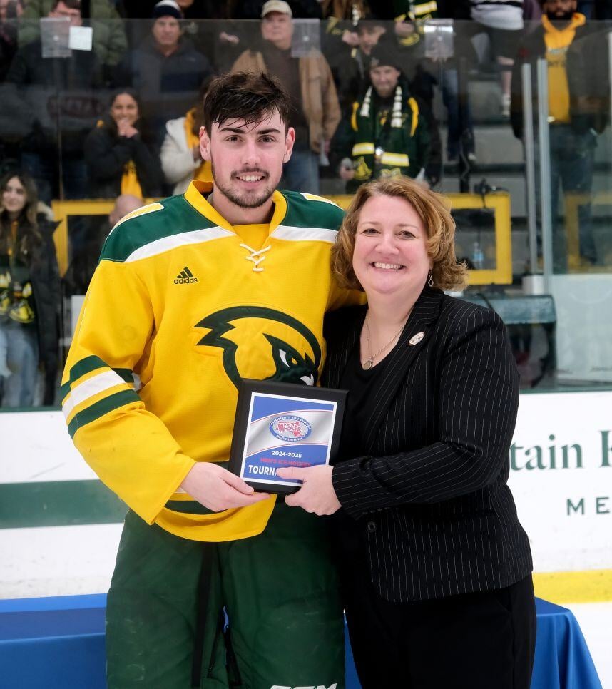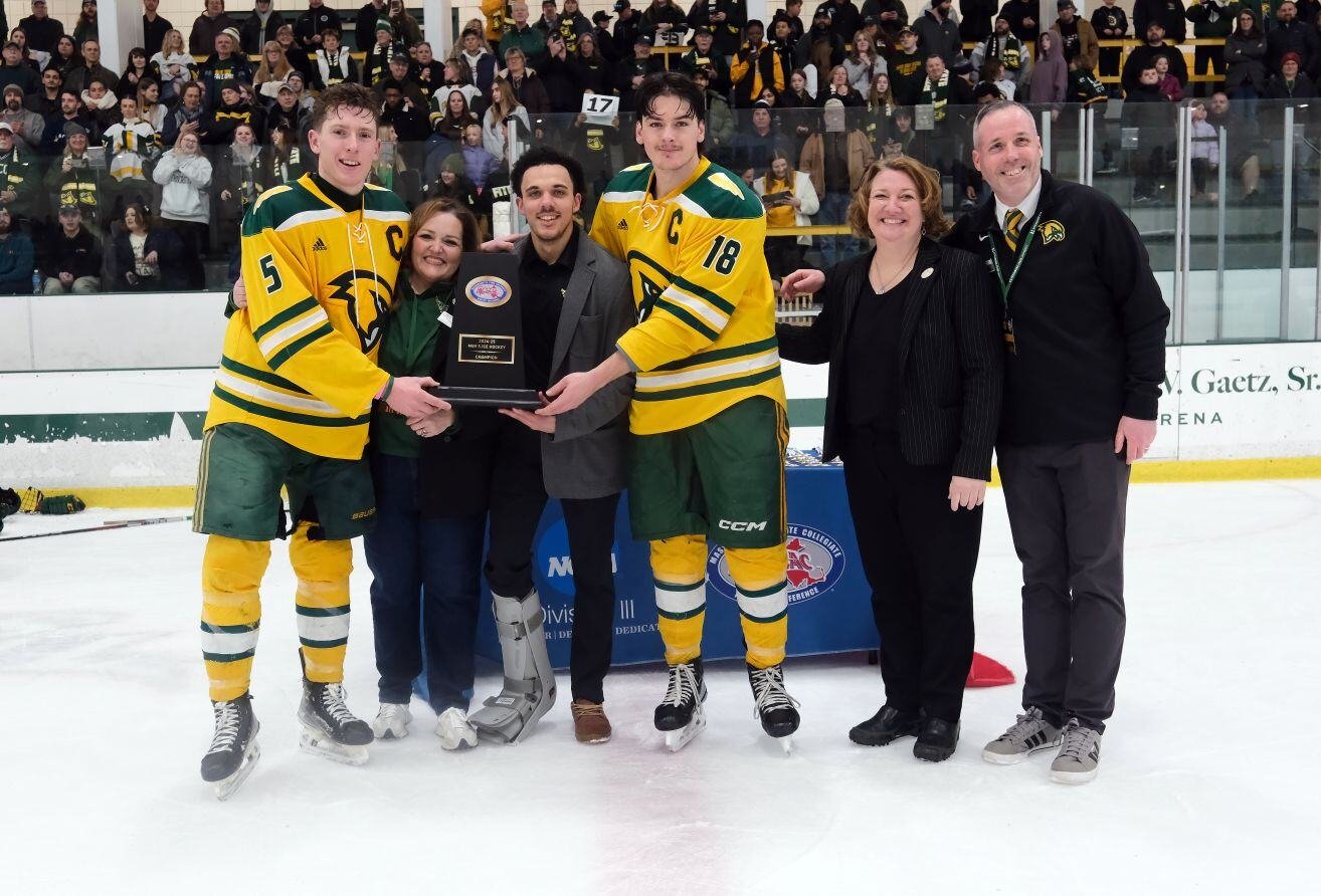 The Falcons men's ice hockey team won the MASCAC championship on Saturday, March 8, defeating the Trailblazers of MCLA before a packed crowd at the Wallace Civic Center. The win marks the third MASCAC title for the Falcons. The Falcons, who were seeded #4, clinched their entry into the NCAA Tournament with the win over #8 MCLA, winning the MASCAC Championship for the first time since 2018 and the third MASCAC Championship (2011, 2018, 2025) in the history of the program. The team now moves on to the NCAA Tournament, and will learn Monday morning where they will travel for the first round. Watch the game, courtesy of Fitchburg Access Television (FATV), here.