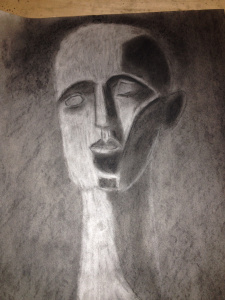 This is the human face drawing. This was one of the first drawings we did in charcoal. Working with charcoal can be challenging, but I found it really easy to work with. What I did was cover the whole page with the charcoal at first and made sure it was evenly spread out. Then I started to erase out the human face with an eraser.