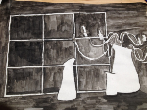While painting, I found it extremely difficult painting around the candles because my mistake was drawing everything so small which gave me less room to work with.