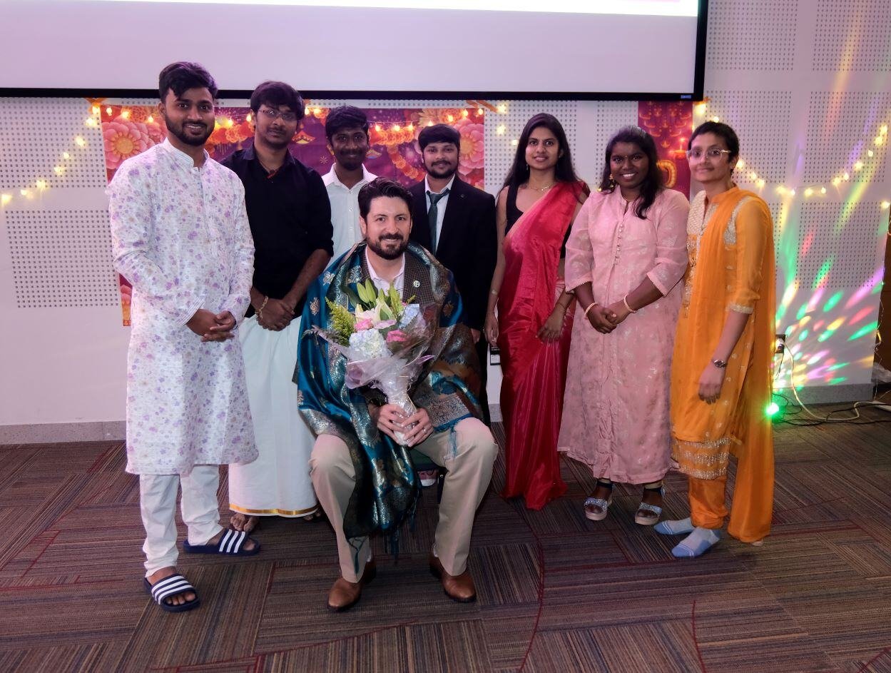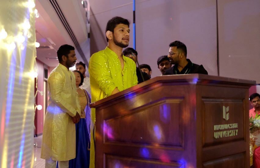 and knowledge over ignorance". The event, including dinner, dancing and an educational portion, Dustin Hodge, husband of President Donna Hodge, represented her for the Felicitation Ceremony, and joined staff members for the lighting of the Dias.