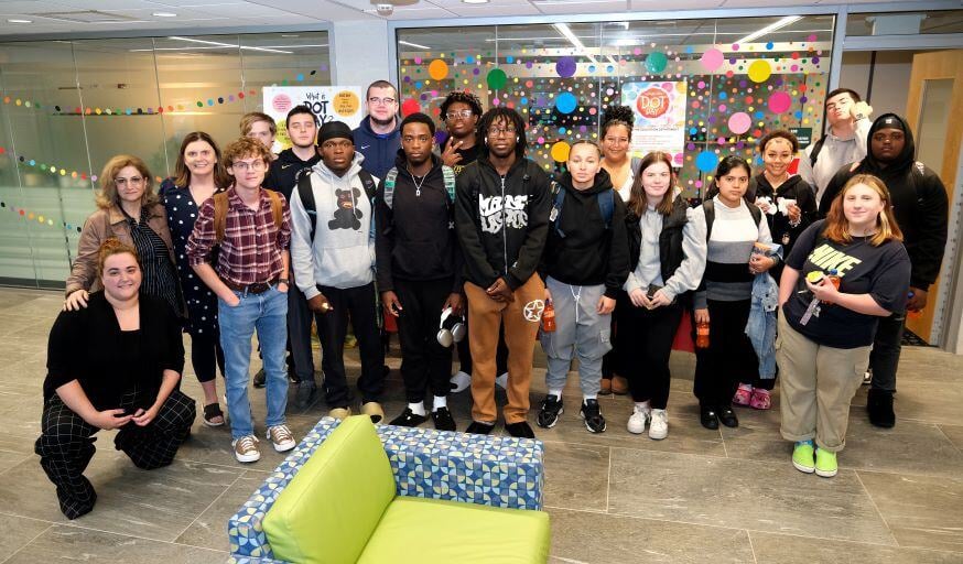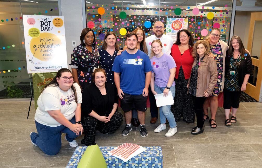 This morning, members of our Kappa Delta Pi Honor Society in Education gathered at the McKay Campus School with some of the second grade students they worked with to create artwork to celebrate Dot Day. Afterward, Kappa Delta Pi, and the Education Department, celebrated the day with dot-centric refreshments, discussions of the book The Dot by alumnus Peter Reynolds '83, a book raffle, and an opportunity to create their own dot art - "Make your mark and see where it takes you.". #KDPProud