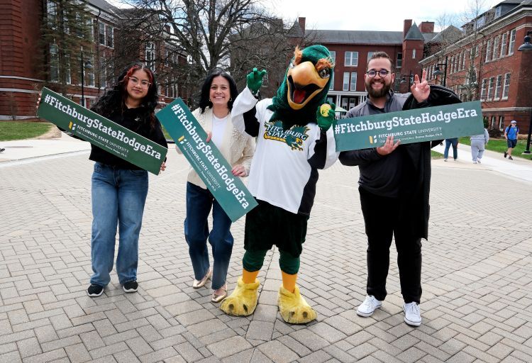 President Hodge helped kick off the Annual Go Falcons Challenge this morning in our Alumni and Giving Office. to each Falcon Athletics team. To support their respective athletic teams. Help support Fitchburg State Athletics by donating to the Falcon Athletics team of your choice, just click here.