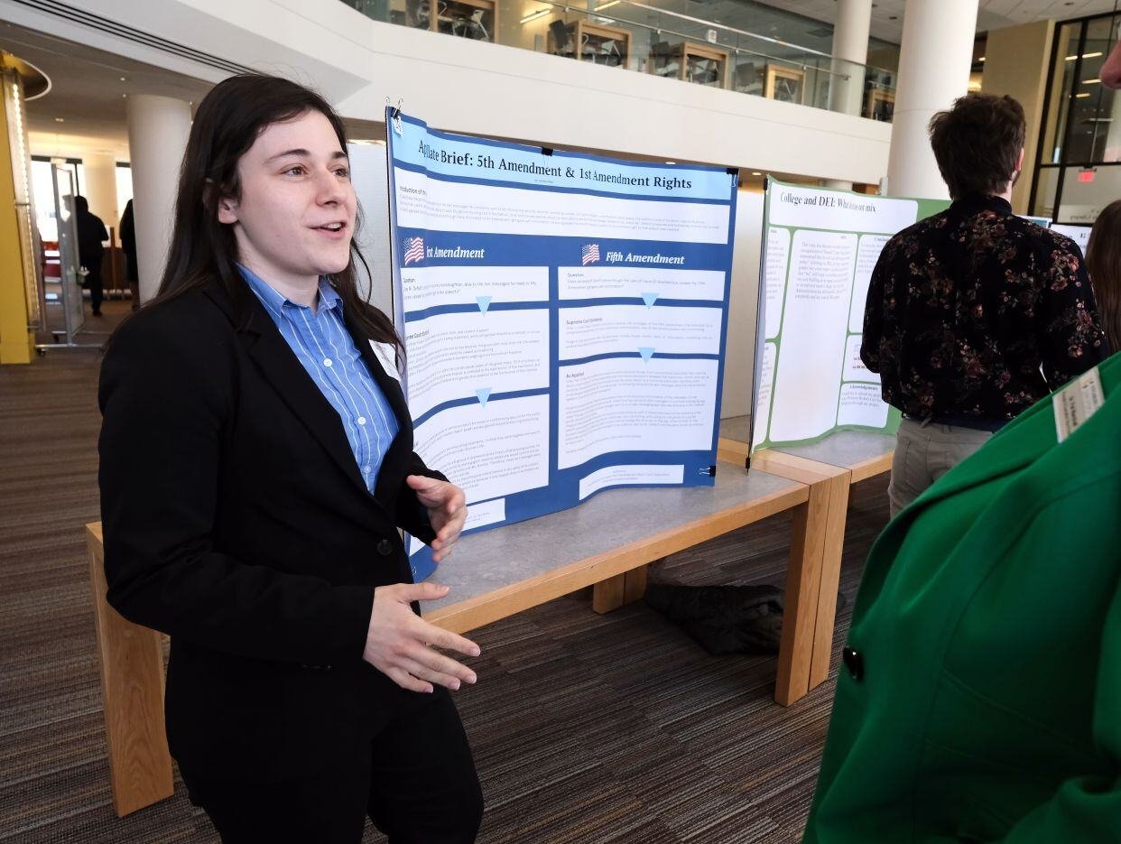 This morning, the university held our annual Undergraduate Conference for Research and Creative Practice in Hammond Hall. The conference is a public forum to enhance student's skills, to share their work, to see the work of others in their field, and to give and receive valuable feedback. The conference was free to attend and open to the public. We're proud of the work our undergraduate community does - from the opening performance of Creative Arts Therapies major Autumn Hughes, attendees had the opportunity to observe lightning talks, oral & poster presentations, panel discussions, ARTeries exhibit, and more! Here are some photos, check back for Take Two to see more photos.