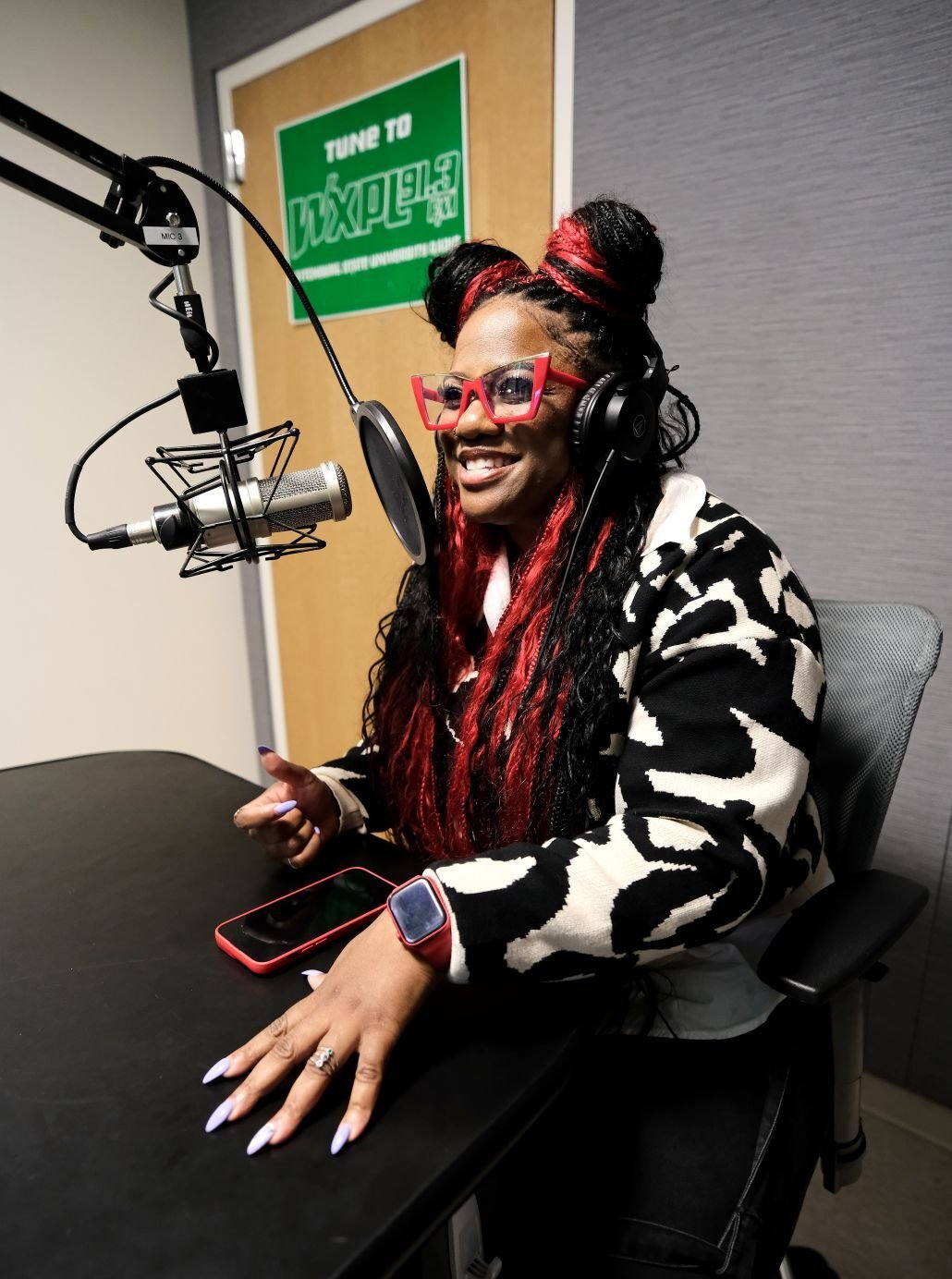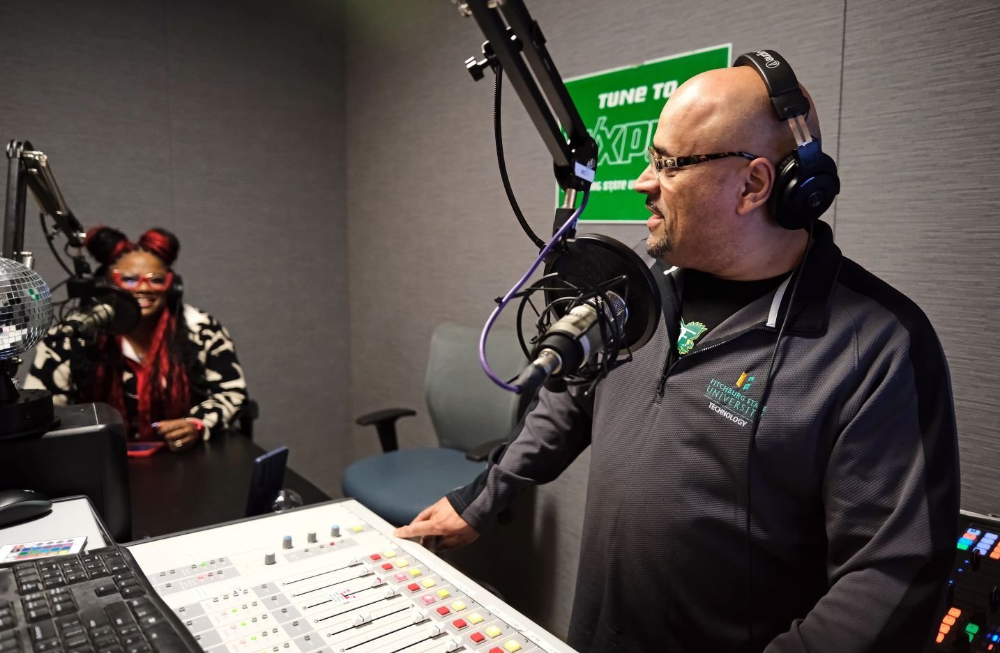 After recording her podcast in the Falcon Hub for Perseverantia: the Fitchburg State Podcast Network yesterday, Artrepreneur Red Shaydez, a Fitchburg State University alumna, hip hop recording artist, educator and cultural architect was interviewed on Fitchburg State University radio station WXPL 91.3 FM on the Joel Rodriguez Show.